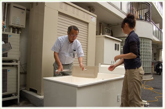 尚、実際にお湯を張ることはことはないので給湯設備などは不要です。またセッティングは全てメトススタッフのみで行ないます。設営時間の目安は、約1時間です。